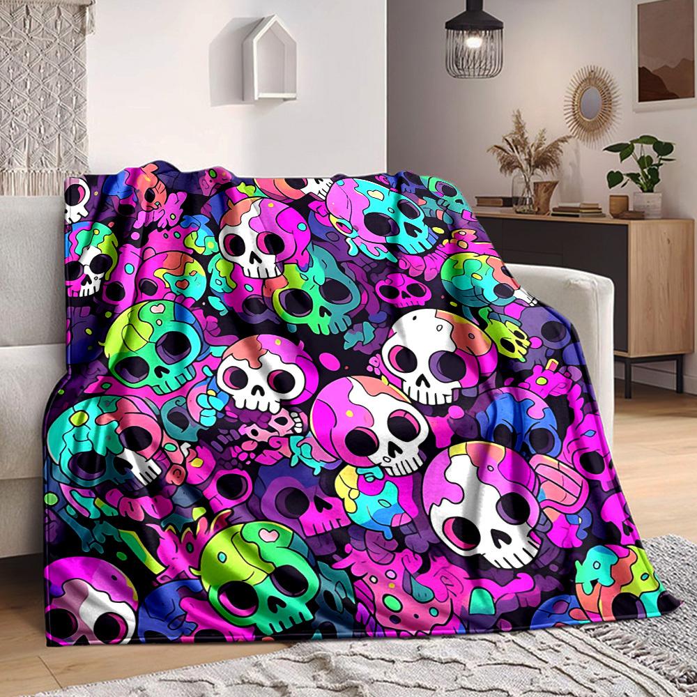 1pc Skull Party Blanket, Lightweight Flannel Throw Blanket For Sofa, Bed, Travel, Camping, Living Room, Office, Couch, Chair, And Bed