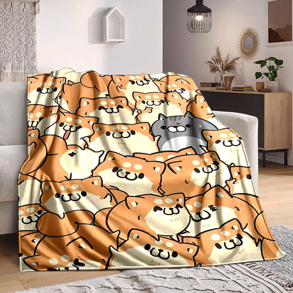 1pc Dogs Kitten Print Blanket Lightweight Flannel Throw Blanket For Sofa, Bed, Living Room, Office, Outdoor Travel, Camping