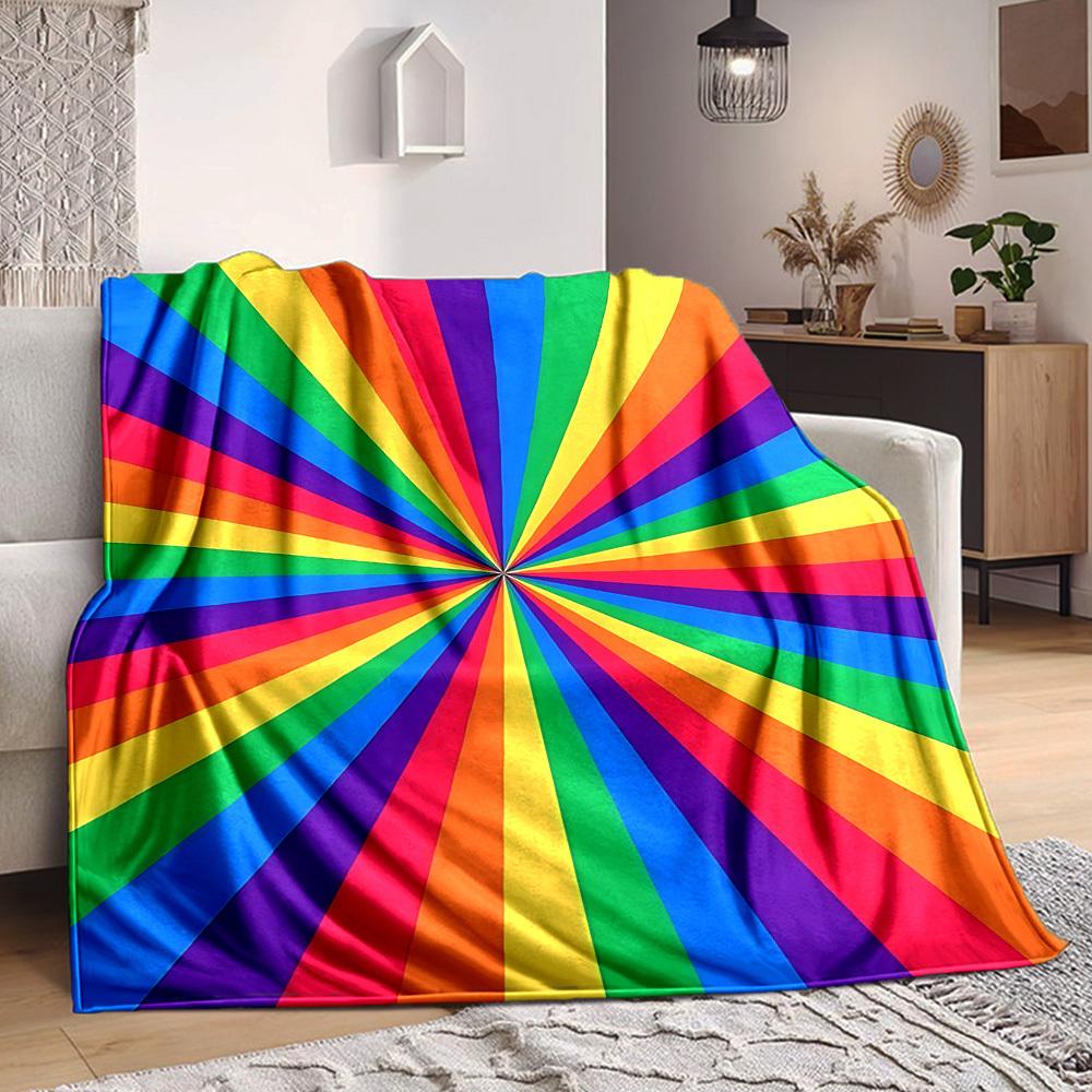 1pc Rainbow Stripes Blanket, Lightweight Flannel Throw Blanket for Sofa, Bed, Travel, Camping, Living Room, Office, Couch, Chair, and Bed