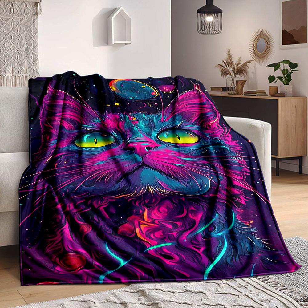 1pc Galaxy Cat Blanket, Lightweight Flannel Throw Blanket For Sofa, Bed, Travel, Camping, Living Room, Office, Couch, Chair, And Bed
