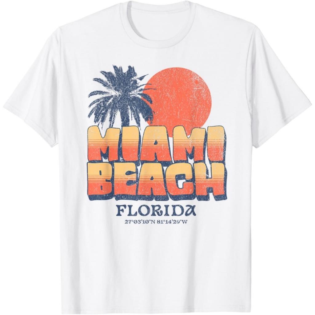 Miami Beach Florida Retro Sunset Palm Tree Vintage Vacation T-Shirt(1)