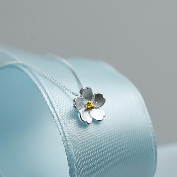925 Silver Cherry Blossom Necklace For Women Fashion Jewelry Gift Elegant Pendant