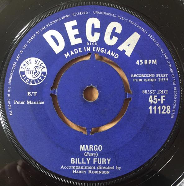 7inch Record BILLY FURY Margo 45F11128 Decca 1959 UK Rock Used