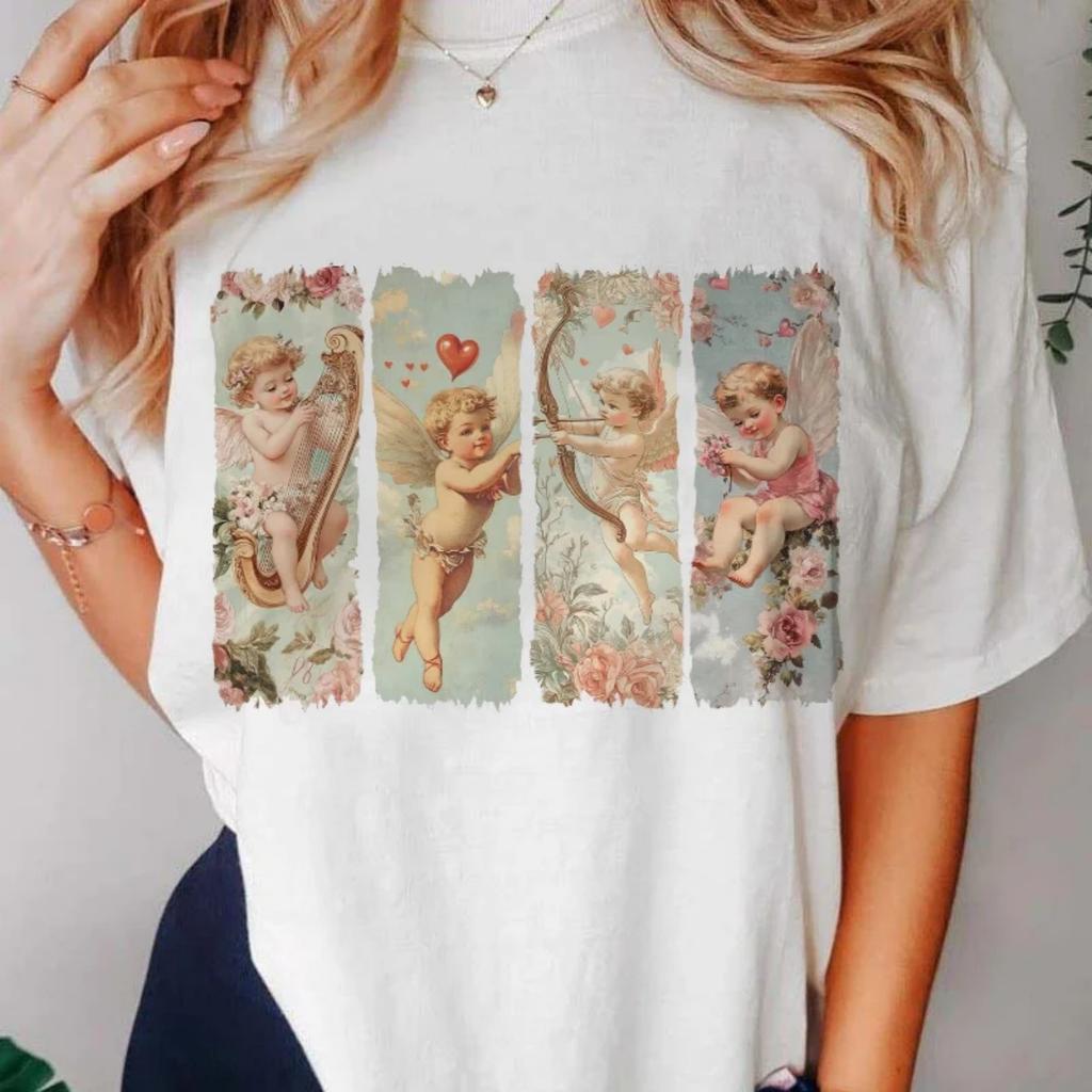 Casual Short Sleeved Women's Fashion T-Shirt Printed Women's Harajuku Cartoon Pattern Valentine's Day Street Style T-Shirt