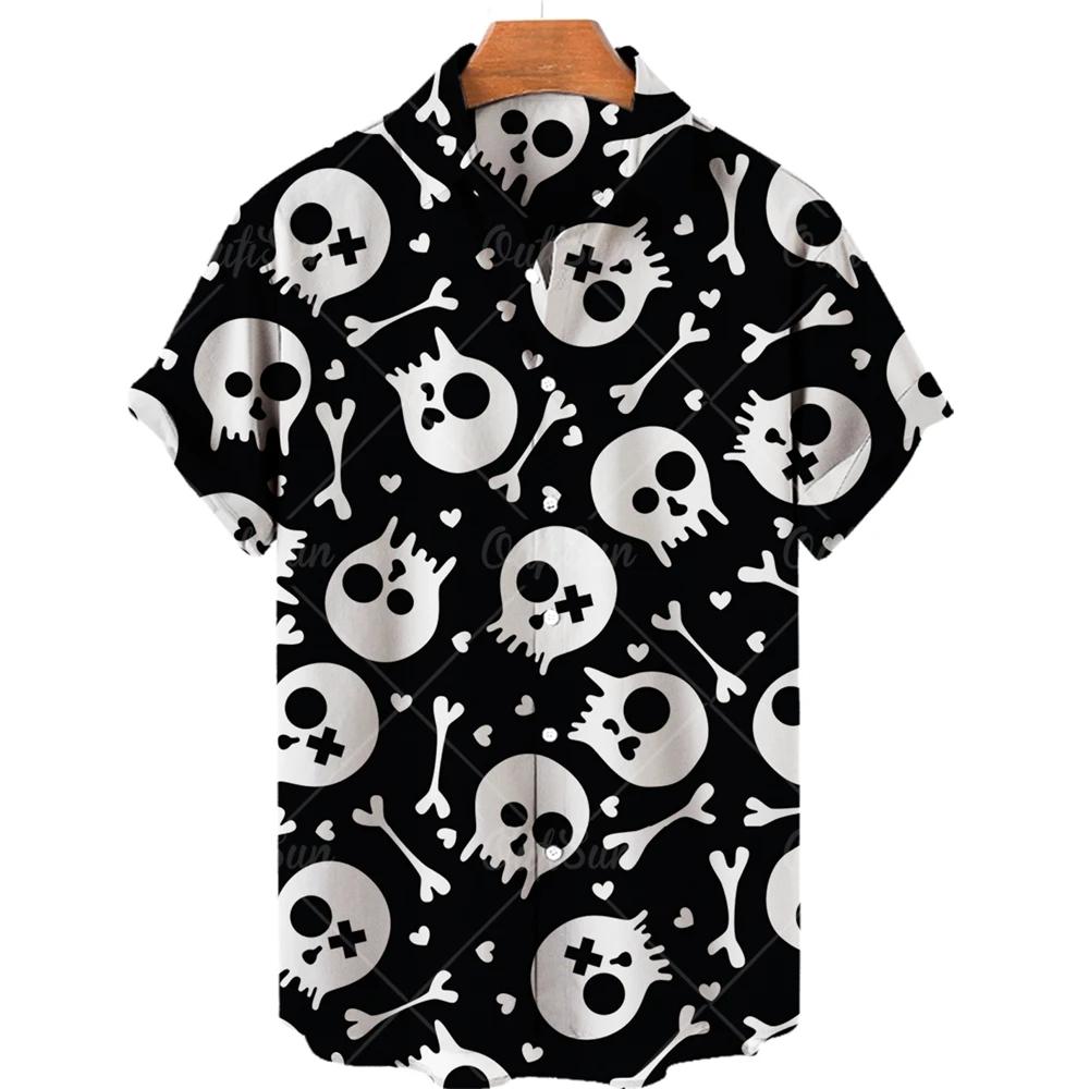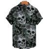 Fashion Men's Short Sleeve 3d Skull Print Hawaiian Shirts Summer Casual Tops Beach Shirts for Men Men's V-neck Shirt