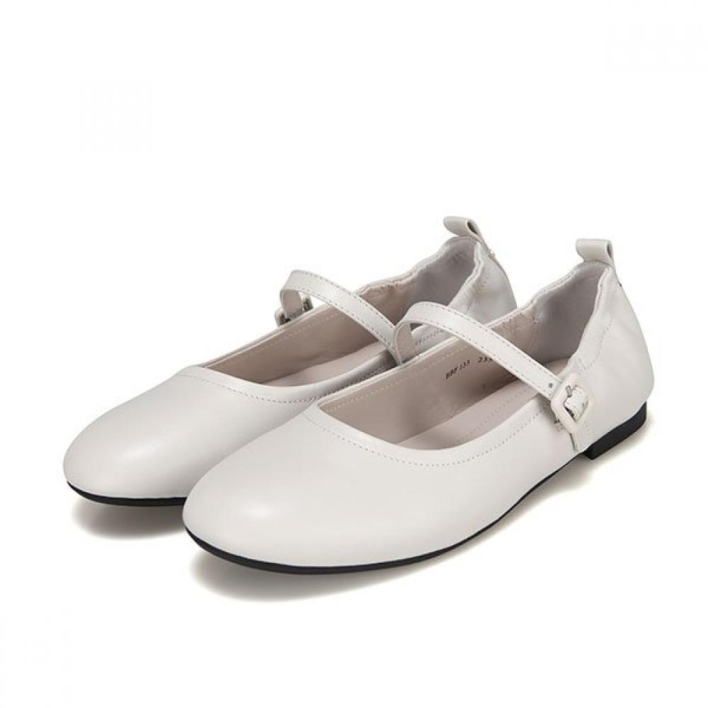 The BABARA Mary Jane Flat BBF133WT is made from leather, offering a soft and comfortable fit. Its molded sole supports flexible movement, and the Mary Jane style strap serves as a focal point, adding femininity to the basic flat shoe. Its design is optimized for daily use, making it versatile for various outfits.