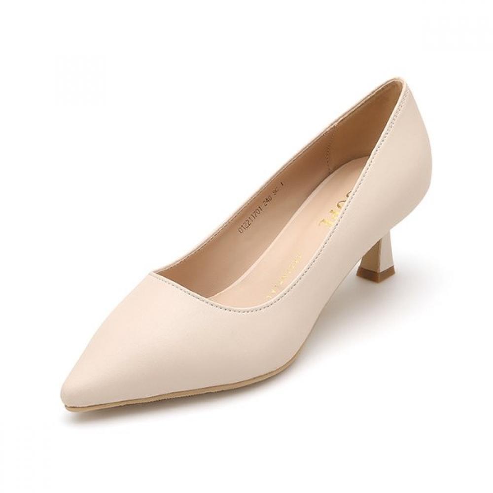 [Misopin] Women's Basic Daily Pumps 012211701 is a basic pump designed with a moderate heel height of 5.5 cm, suitable for daily life with its simple design. Available in three color options (black, ivory, pink) and it is recommended to choose one size larger than your usual size due to the small fit.