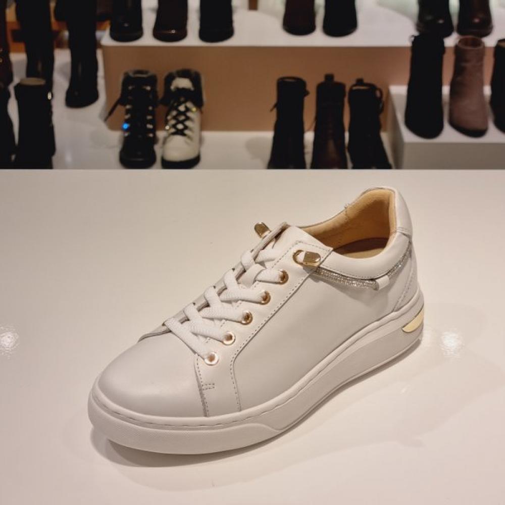Tandy Women's Sneakers (G21416, WHITE) are casual sneakers in a clean white color that pair well with skinny lines and various styles. They feature cushioned mold soles and flexible slip-resistant soles for comfort and support.