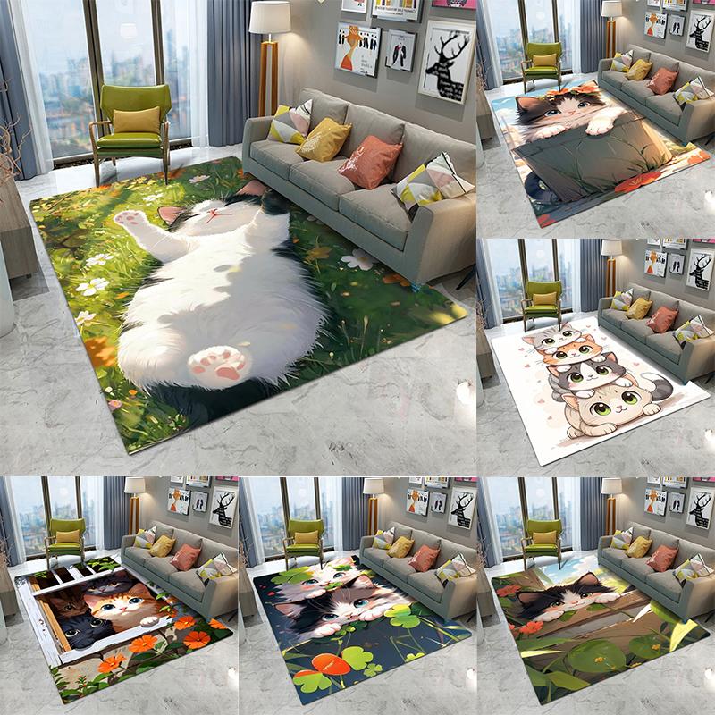 Cute Kitten Carpet Cartoon Living Room Bedroom Kitchen Sofa Entrance Rug Non-slip Washable Home Beautiful Cute Girl Decor Mat