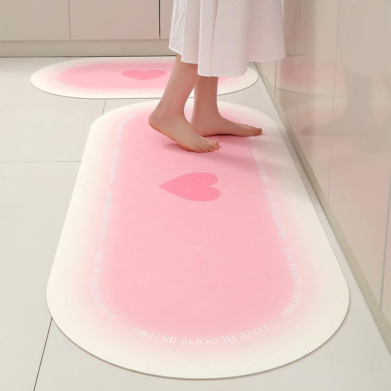 Floor Mat for Kitchen Non-slip Waterproof Oil-proof Carpet Pink Gradient Heart Rug Long Size Home Decoration Foot Mats