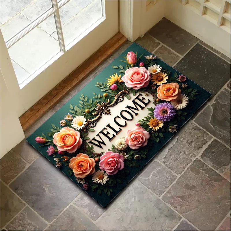 Summer Outdoor Carpet American Floral Entrance Door Welcome Carpet Bedroom And Bathroom Anti-Slip Carpet Home Decoration