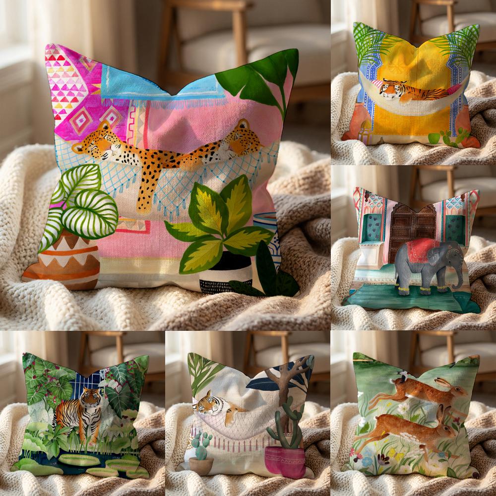 Cheetah Llama Leopard Jungle Cushion Cover Multi-Scene Pillow Cover for Home & Car - Reversible, Soft & Durable for Daily Use
