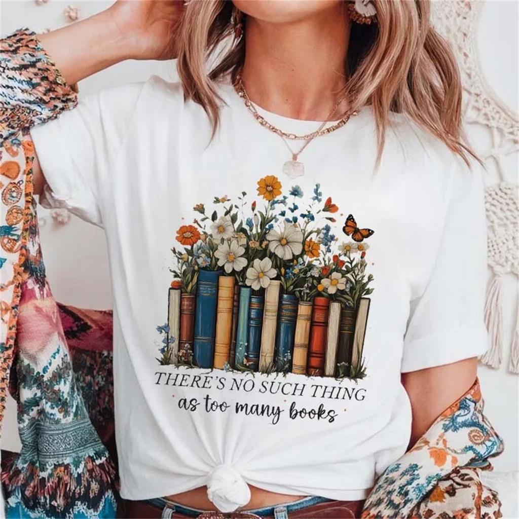 Clothing Women's Short Sleeved T-Shirt Printed Fashionable Cute Retro Flower Top Book Flower Pattern Women's Casual T-Shirt