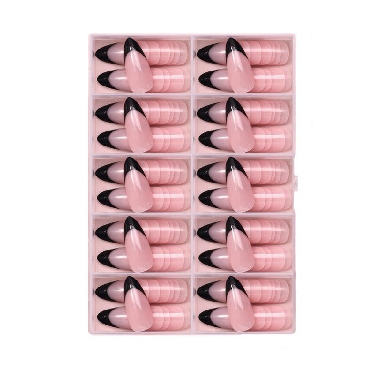 120x/Box Black French Tip False Nails Simple Full Cover Stick On Nails Wearable Almond Press On Nails Manicures Suppliss