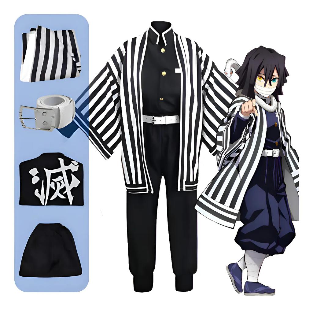 New Obanai Iguro Snake Cosplay Anime Demon Slayer Kimetsu No Yaiba Obanai Iguro Cosplay Kimono Pant Top Kisatsutai Uniforms Halloween Costume Set