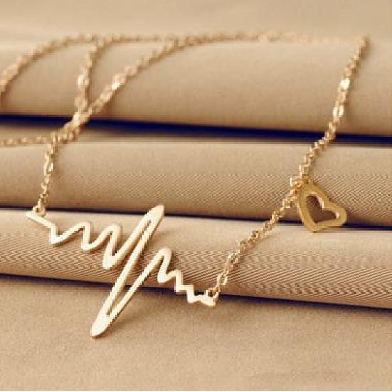 C081 Korean ECG Necklace Heart-shaped Imitation Titanium Steel Heartbeat Peach Heart Women Pendant Clavicle Chain Gold-plated Jewelry
