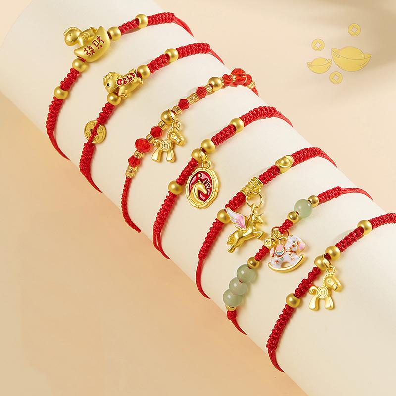 Chinese Style 2026 Horse Year Zodiac Bracelet For Women Men Lucky Hand-Woven Red Rope Bracelet New Year Jewelry Party Gift