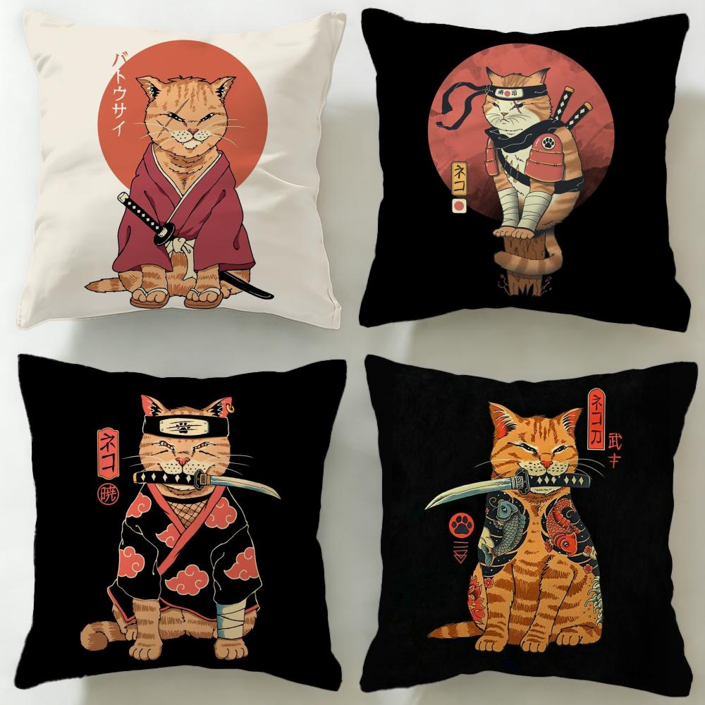 Classic Theme Japanese Style Cat Cushion Cover Soft & Easy-Wash Pillow Case – Versatile for Couch, Bed, Travel and Office