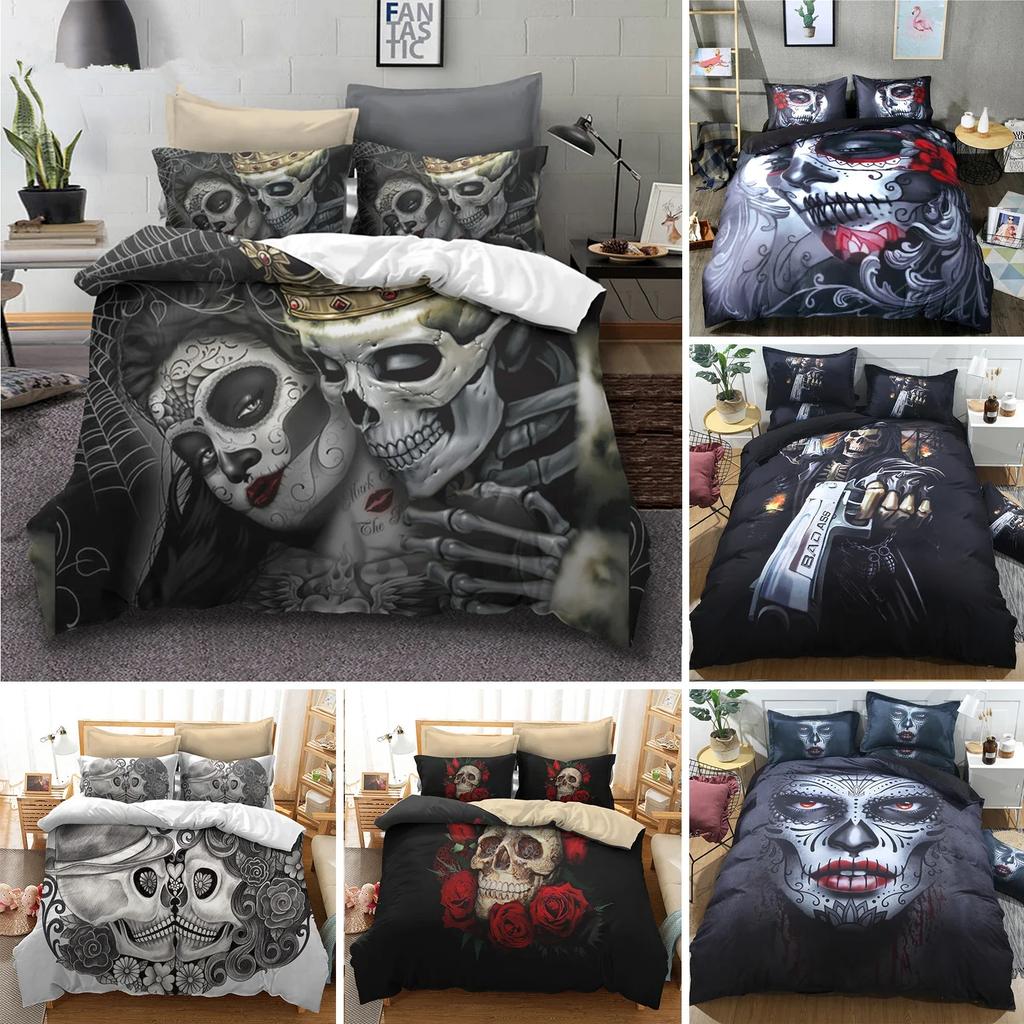 Sugar Skull Bedding Sets King Beauty Kiss Skull Duvet Cover Bed Set Bohemian Print Black Bedclothes Queen Size Bedline