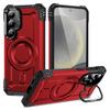 For Samsung Galaxy S24 Magnetic Case Lens Kickstand PC + TPU Shockproof Phone Cover