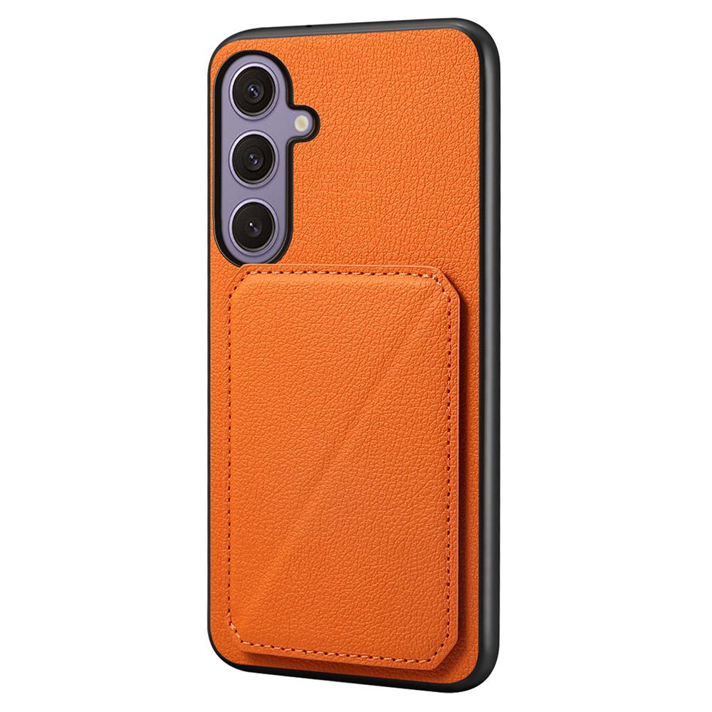 For Samsung Galaxy S25+ Case Card Holder Kickstand Calf Textured Leather + PC + TPU Phone Cover
