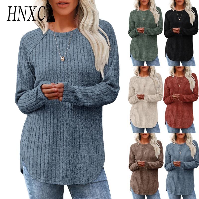 HNXC Women's Fashion Casual Solid Color Print Long Sleeve O Neck Blouses & Shirts