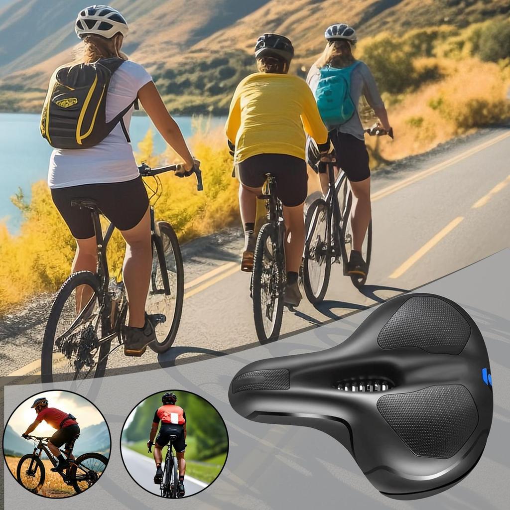 Bicycle Saddle Double Shock Absorbing Cushion Memory Foam Comfortable Bike Seats for Men for Mountain Road Cycling Biking
