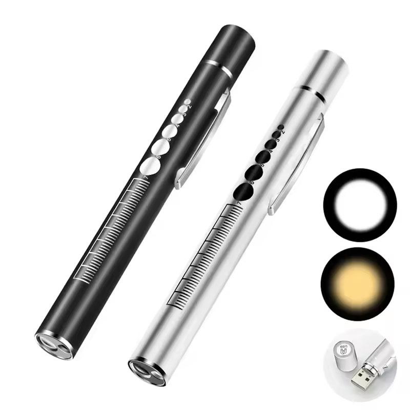 Mini Portable Penlight LED Flashlight Oral Pupil Medical Handy USB Rechargeable Stainless Steel Torch Light Outdoor Fishing Tool