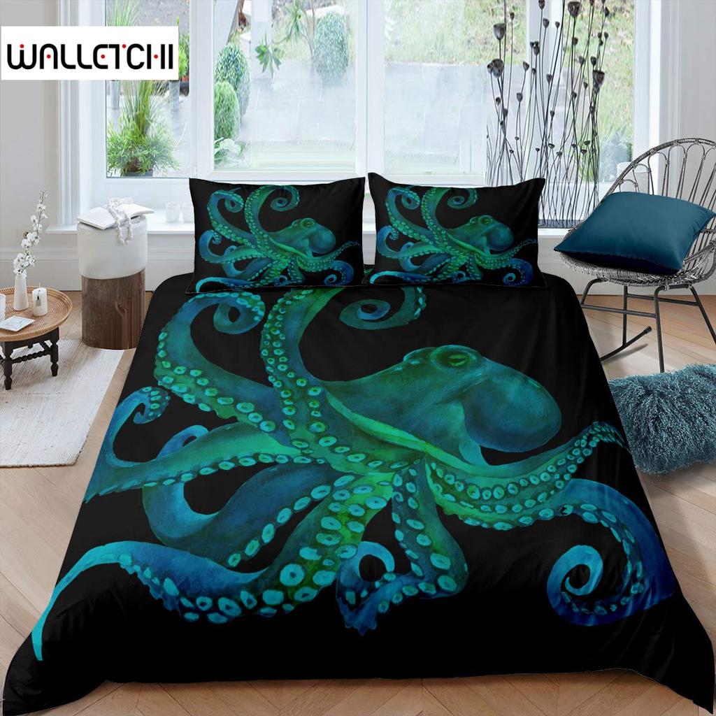 Octopus Duvet Cover Set Microfiber Green Octopus Tentacles Twin Bedding Set Sea Marine Theme Underwater Animal Comforter Cover