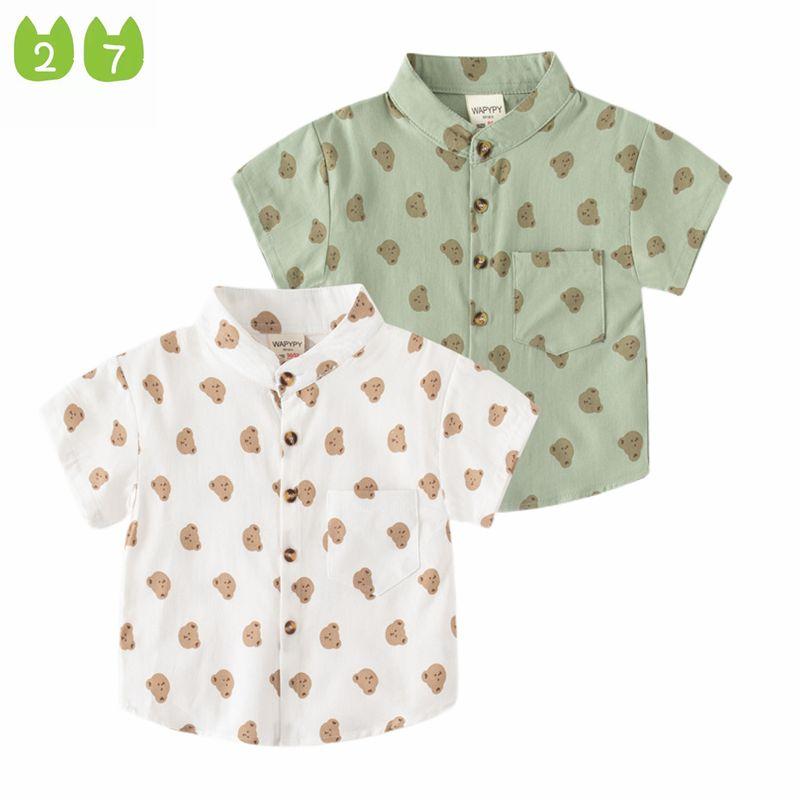 K-style Children's Clothing Kids Stand Collar Short Sleeve Shirt Boys Bear Printed Shirt Summer Baby V Neck Half Sleeve Tops
