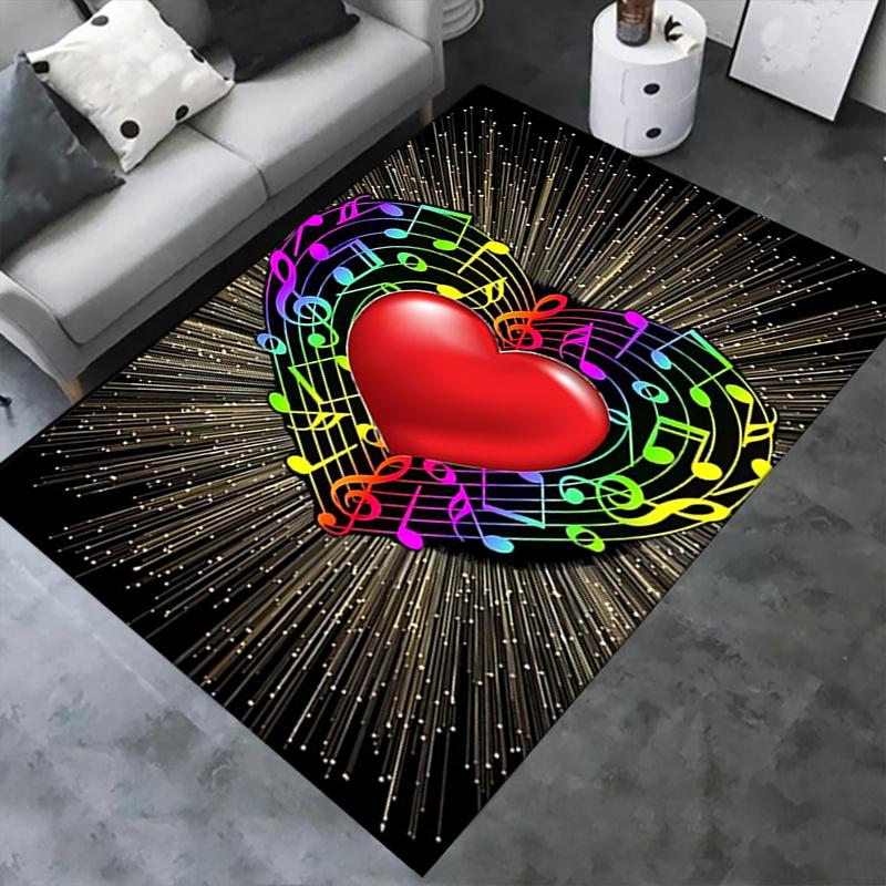 Colorful Musical Notes Heart Chair Mat Office Carpet, Home Decor, Desk Pad Gift, Suitable for Bedroom, Living Room, Various Rooms