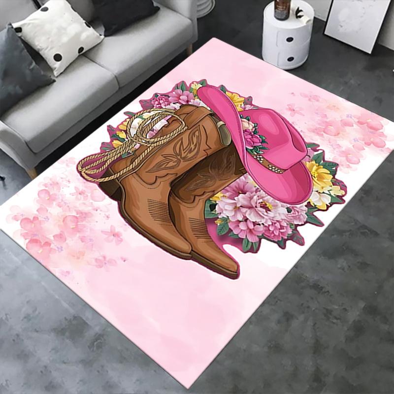 Pink Cowboy Boots Chair Mat Office Carpet, Oversized Rug for Home Decor, Sofa Mat, Desk Pad Gift, Suitable for Bedroom, Living Room, Various Rooms