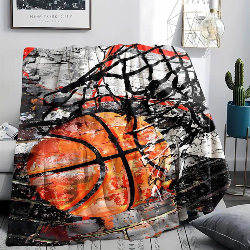 1Pc Basketball Print Flannel Blanket, High Quality Comfortable for All Seasons, Home Decor, Warmth and Comfort, Perfect for Christmas Gifts