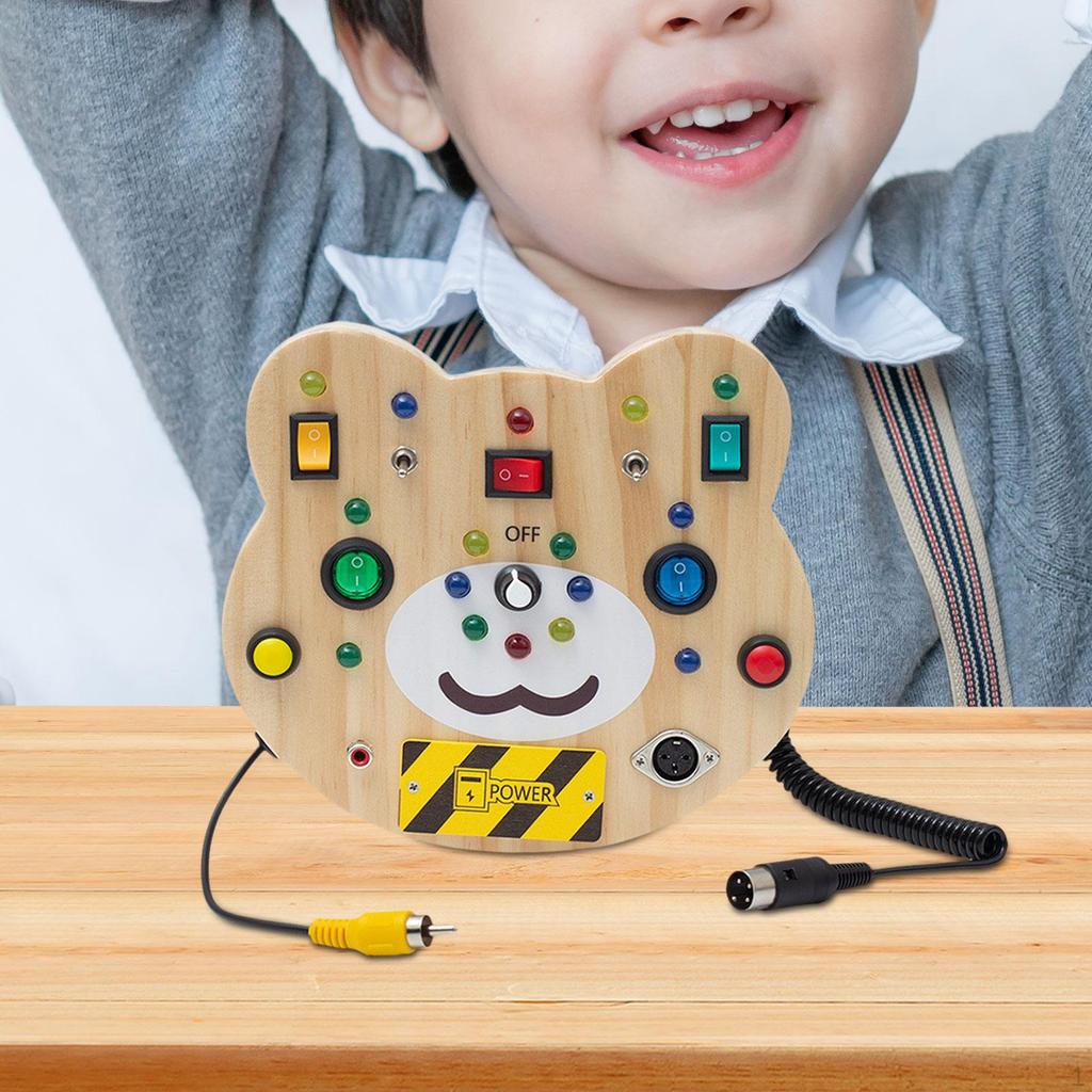 - 【Busy Board】Wooden busy board with various switches to control different colors of lights, very interesting.