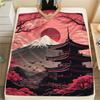 1Pc Japanese Pattern Print Flannel Blanket, High Quality Comfortable for All Seasons, Home Decor, Warmth and Comfort, Perfect for Christmas Gifts