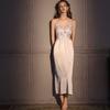 Sexy Pajamas Women's Ice Silk Thin French Suspender Nightdress with Chest Pad Long Magnolia Flower Pure Desire Style Loungewear