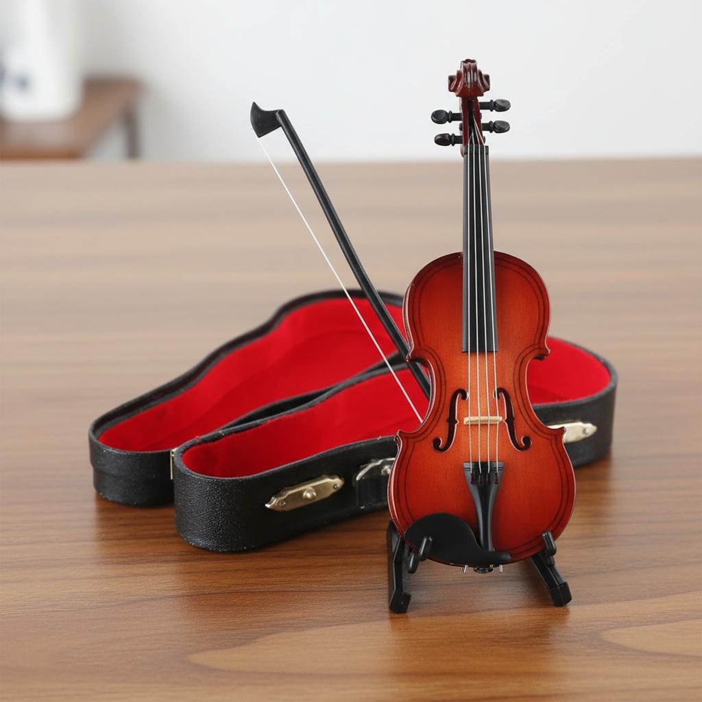 Playable Tiny Violin Figurine Multi-Purpose Miniature Musical Instrument Wooden Handmade Violin Model Home Decorative Ornaments