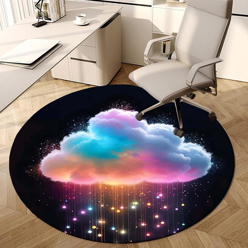 1pc Colorful Cloud Rainbow Rain Round Carpet, Made of Polyester,Perfect for Decorating Office Chairs, Living Rooms,Vibrant Decorative Rug