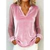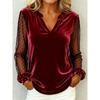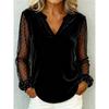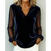 Elegant V-neck Mesh Lace Splicing Blouse Women Long Sleeved Velvet Dot Printed Loose Shirts Spring Autumn Office Tops Casual Simple T-shirts Clothing