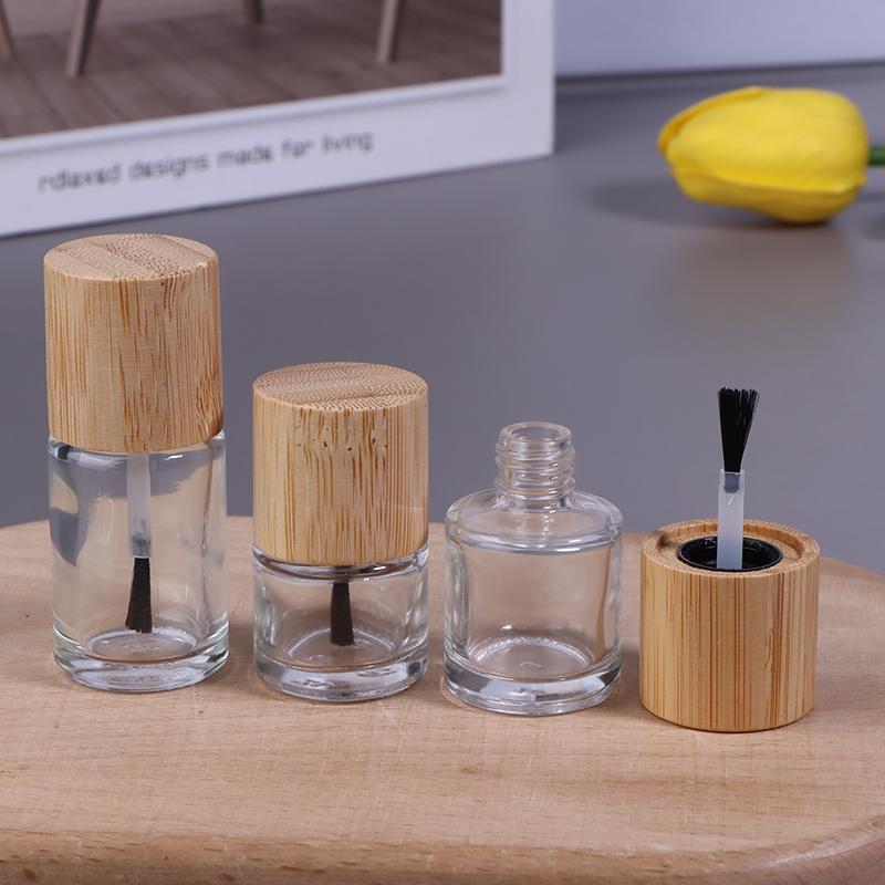 Cylindrical Glass Nail Oil Bottles with Solid Wood and Bamboo Caps – Available In 5ml, 10ml, and 15ml Capacities