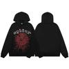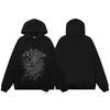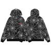 This stylish hoodie features a unique spider web foam letter print that adds a modern twist to a classic design. Made from soft and breathable cotton terry cloth, it provides comfort and durability without the added bulk, thanks to its thin construction. The long sleeves make it perfect for layering, while the loose fit ensures a casual and relaxed look. Ideal for men and couples who appreciate a blend of comfort and distinctive style in their wardrobe.