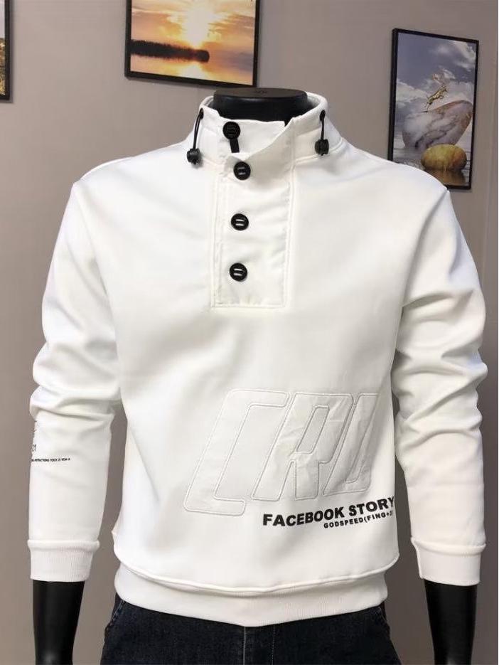 Men's 2025 Slim Fit Pullover Hoodie - Velvet Stand Collar, Stylish Autumn/Winter Base Layer Top
