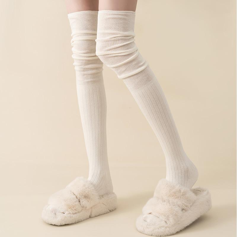 Socks Women'S Knee Socks Autumn And Winter, Thigh Socks Pure Cotton Sweat-Absorbing Japanese Stacking Socks Solid Color Fashion High-Tube Socks