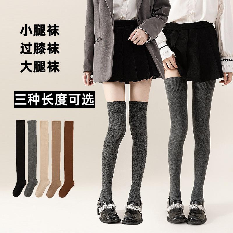 Knee Socks Women'S Autumn And Winter Extended Thigh Socks Micro-Pressure Calf Socks Solid Color Versatile Jk College Style Pure Cotton Socks Wholesale