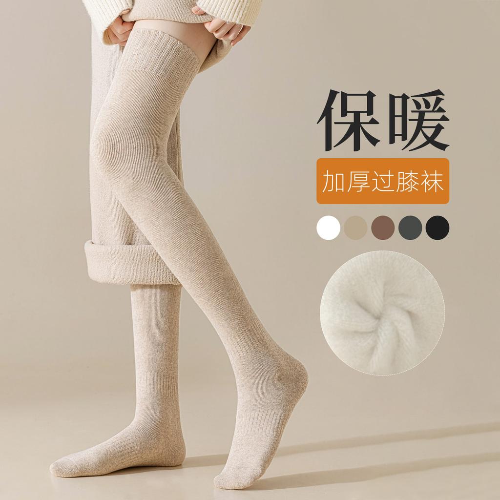 Socks Women'S Winter Thickened Knee Socks Solid Color Wear-Resistant Cotton Socks Anti-Pilling Casual Versatile Stockings Wholesale