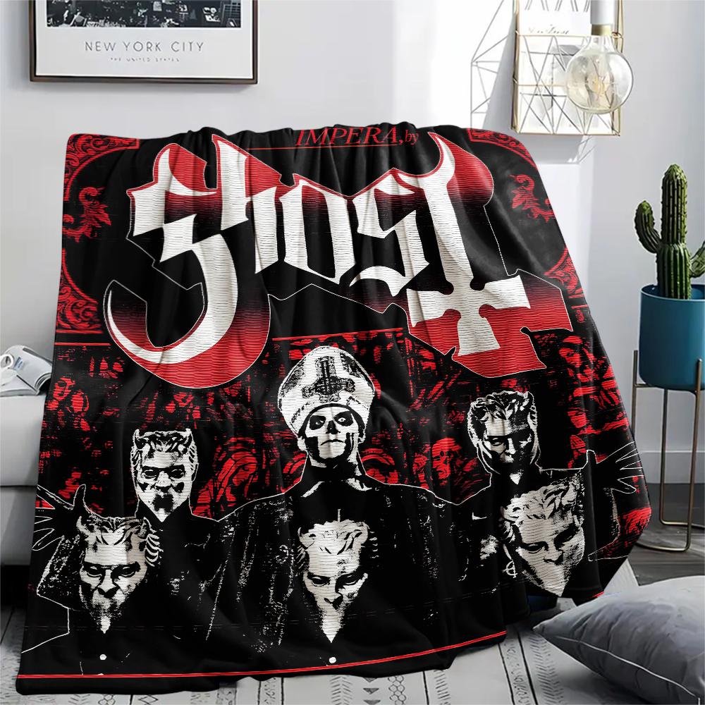 1Pc Ghost Band Print Flannel Blanket, High Quality Comfortable for All Seasons, Home Decor, Warmth and Comfort, Perfect for Christmas Gifts