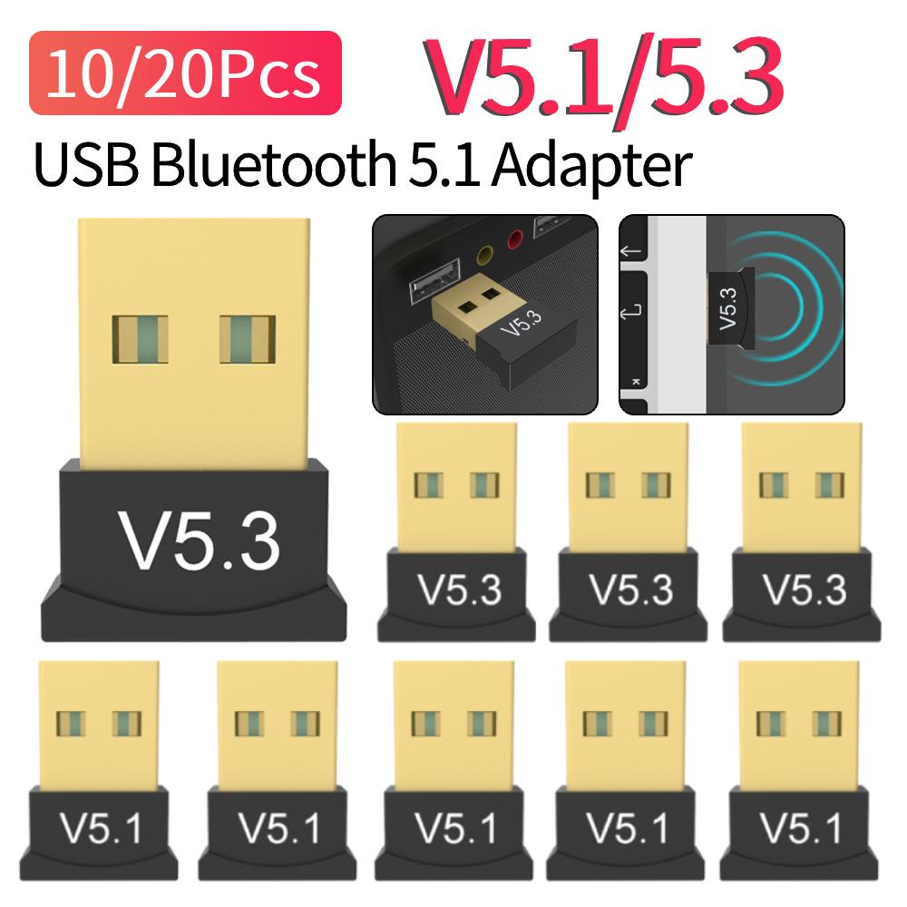 10/20Pcs Wireless USB Bluetooth 5.3/5.1 Adapter Support Windows 11/10/8.1 BT Audio Transmitter Plug Play Music Receiver Adapter