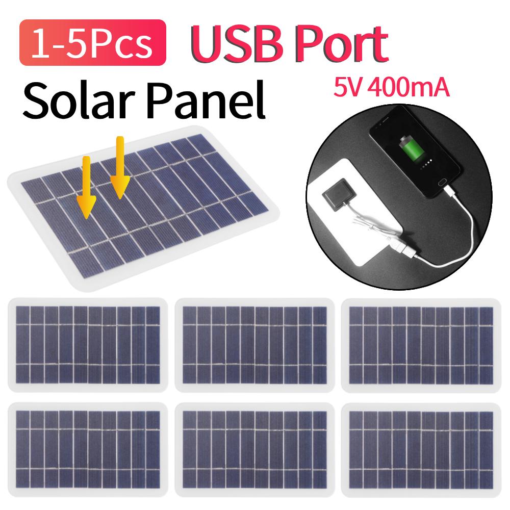 1/3/5 Pcs 2W 5V 400mA Solar Panel Portable Polysilicon Solar Chargers USB Port Outdoor Cell Mobile Phone Emergency Power Bank
