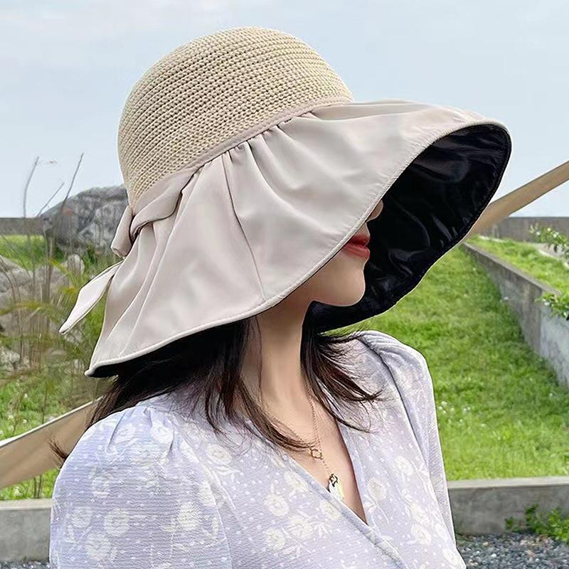 Spring Summer Hat For Women Big Wide Brim Women Bucket Hat Solid Color Foldable Uv Protection Outdoor Beach Panama Cap Sun Hats