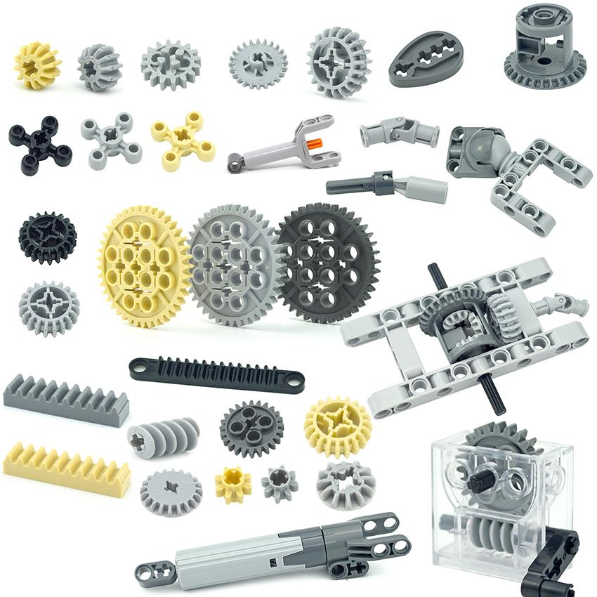 Technical Gear Axle Bricks Parts Worm Rack Conector MOC Train Car Crane Model 18942 18940 62821 Compatible Assembles Particles